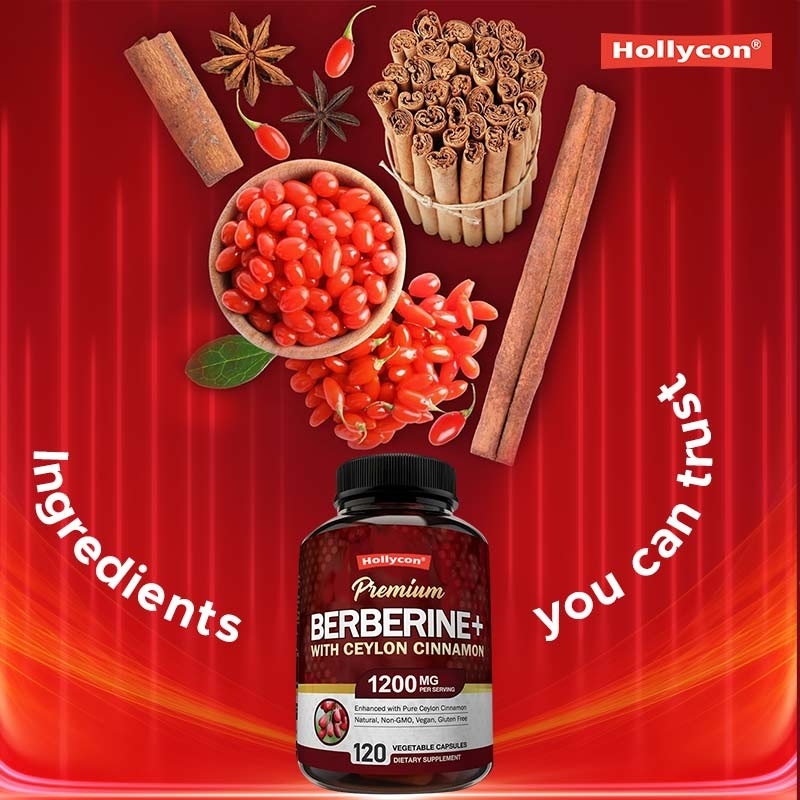 ホリーコンセイロンシナモン付きのベルベリンは,認知と胃腸の健康,コレステロール,脂質レベルを正常範囲内でサポートします.